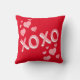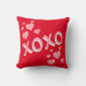 Una almohada roja completamente adorable y romántica con letras rosas Xoxo gigantes con corazones rosados.