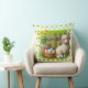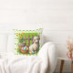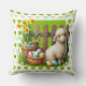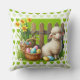 Un cordero de Pascua con cesta de huevos sobre una almohada verde con corazones verdes para su decoración de Pascua