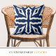 Este cojín costero griego azul y blanco mediterráneo es audaz, elegante y perfecto para los interiores de mar o yate, o para los personalizares de los colores que le convengan.