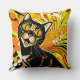 Retro colorido retro abstracto retrato de un gato negro para un amante del gato en una almohada colorida