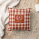 Almohadón con cresta de monograma de gingham rojo-naranja elegante y rústico.