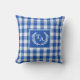 Funda de Cojín con Crestón de Monograma con Gingham Azul Elegante y Rústico.