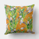 almohada de hilado con un patrón floral botánico, elaborada a partir de un boceto de vida dibujado a mano. Hermosas flores primaverales - crocos blancos con hojas verdes frescas sobre fondo amarillo dorado, puntos blancos salpicando alrededor de ellos. © Clipso-Callipso / Julia Khoroshikh
