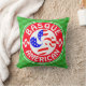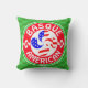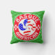 Cojín decorativo de la Cruz Euskara Lauburu. Cruz vasca, con bandera de los Estados Unidos, motivos de lauburu y el texto vasco americano. En rojo y verde.