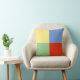 Cojín decorativo de cuadrados rojos y azules de color amarillo moderno. ¡Cuatro colores que representan los cuatro elementos de la naturaleza!