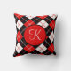 Cojín Decorativo Cuadro de Argyle Rojo Negro y Blanco con Monograma