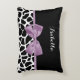 Una linda almohada con acento de girafa blanca y negra con una cinta violeta de lavanda atada en un arco femenino. Personalice este diseño de impresión animal de bonito agregando su nombre. El amarillo dorado en el reverso puede ser personalizar con su propio color personalizado. Imagen plana impresa, no arco real.