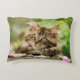 Bonita y encantadora mesa marrón de gatito Maine Coon, descansando en un jardín mirando con ojos de buñuelos. Un lindo retrato de un gato cónio tomado por Katho Menden. Esta almohada es un regalo para los amantes del gato y de las mascotas.