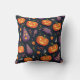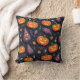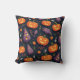 Naranja Jack O Lantern Patrón de calabaza de Halloween Cojín decorativo Esta almohada de decoración casera de Halloween presenta un patrón de calabazas lindas de naranja y lámparas amarillas de estilo jack-o' con un color de fondo negro.