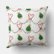 Celebra la temporada con un torbellino de dulzura y brillo! Esta almohada festiva presenta un delicioso patrón de corazones de caña de caramelo recortados como sombreros de Santa y magdalenas quequitos de árbol de Navidad coronados con estrellas doradas. Conectado con líneas punteadas y esparcido a través de un crujiente fondo blanco, es una alegre mezcla de delicias vacacionales y encanto juguetón, perfecto para rincones acogedores, alegres cocinas o regalos con una sonrisa.