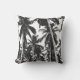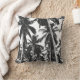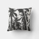 Cojín con un diseño de palmeras tropicales en blanco y negro.