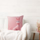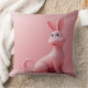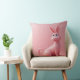 Un cojín rosa brillante con un conejo rosa grabado en él.