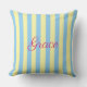 Custom decorative and practical trow pillow, designed with light blue and yellow stripes, personalized with the name of the recipient in hot pink. Easy to personalize! Perfect as a gift, ideal to add a fresh touch of personality to any room. More versions and matching articles with original designs are available in my collections. Feel free to contact me if you need any help to customize this or other items from my store.