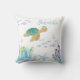 A serene children's pillow featuring a cute, smiling sea turtle swimming in light blue watercolor-style water, surrounded by friendly fish and coral. The design is personalized with the name "Samantha" in a delicate script, perfect for a calming, nautical-themed girl's room or nursery.