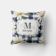 Cojín Decorativo Custom Navy Gingham Daisy Monogram