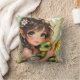 Anime fairy themed throw pillow. An adorable anime fairy holding her chibi baby dragon. Cute fairy with big green eyes and white flowers in her hair.