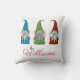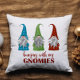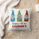Navidades amables y divertidos Pillow con tres gnomos y las palabras "Colgando con mis gnomos" en el frente. Si se coordina hacia atrás, agregue su nombre de familia, tenga su propio mensaje en la parte posterior o deje en blanco. Ver toda nuestra decoración de vacaciones en nuestra tienda Zazzle!