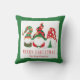 Espléndida almohada de tiro rojo y verde reversible con tres divertidos gnomos de estilo escandinavo con gorras rojos y verdes de temporada. Puedes personalizar fácilmente el saludo de "Feliz Navidad" y tu nombre en la parte inferior o dejar en blanco.