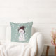 Esta almohada de Navidades muy linda presenta a un tímido muñeco de nieve disfrutando de la nieve.
