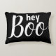 Decoración en el interior de su habitación para las espeluznantes vacaciones con esta elegante almohada de acento de la decoración de Halloween negro Hey Boo Black. Es un diseño de moda para cualquier habitación de la casa. La almohada rectangular tiene un sólido negro en ambos lados y las palabras son "Hey Boo" en grandes letras en negrita y en blanco mezclado con un simple tipo de letra. Color personalizar de su deseo.