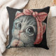 Add a touch of adorable charm to your home with this cute kitten throw pillow featuring a cross-stitch inspired pixel art design. This sweet gray kitten with big sparkling eyes and a stylish pink bow stands out beautifully against a dark background, creating a bold yet playful look.