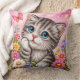 Brighten up your home with this irresistibly cute kitten throw pillow featuring a detailed cross-stitch inspired design. This adorable gray tabby cat with big blue eyes is surrounded by colorful flowers and a delicate butterfly, all set against a soft pink background for a dreamy, cheerful look.