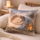 Create a peaceful and comforting bedtime atmosphere with this adorable sleeping hedgehog pillow. Featuring a cozy woodland hedgehog resting under a soft blanket, surrounded by candlelight and a dreamy night sky.