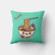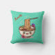 😍Super cute image of a cartoon style bowl of ramen accented with Japanese flora on a beautiful teal pillow.