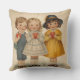 Vintage kids artwork on pillows that captures timeless childhood moments. A charming vintage-style illustration of children, perfect for nostalgic art and decor.
