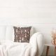 A cottage core folk art style throw pillow with cute little fairy gnomes, mushrooms, flowers in mauve, brown and burgundy. A sweet theme for a girl's room.