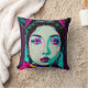 Una pintura digital de un poster Geisha al estilo ciberpunk. Cojín decorativo de 16" x 16"
