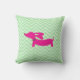 Playful green chevron pillow featuring a bold pink adorable wiener dog design for a look that’s both playful and polished. The rich green tones add a fresh, contemporary vibe while the dachshund detail keeps it unmistakably fun.