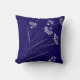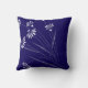 Un sencillo diseño vintage de algunas flores de margarita blancas se topa con el vibrante fondo azul profundo. El diseño se invierte en la parte posterior de la almohada.