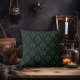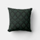 Cojín decorativo Damask verde y negro. © Dark Heart Desires. Una academia oscura o almohada gótica lanzada con un patrón de damasco verde y negro.