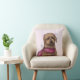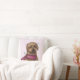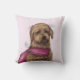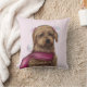Una almohada adorable ilustrada que representa un doodle dorado llamado Macrina del libro "Amor Sacrificial" de Ian M. Snyder.