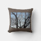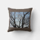 Un Cojín decorativo marrón con una imagen de un árbol y un cielo.