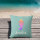 Una linda almohada personalizada de lanzamiento de caballito de mar. Con sus colores pastel en un arcoiris de tonos pastel, es una gran elección para una habitación chica.