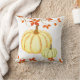 Esta almohada de tiro se muestra en hojas otoño y calabazas impresas con un color de fondo blanco. Personalizar esta almohada o compra como está.