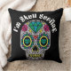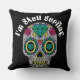 Hermosa almohada con letras de "I'm Skull Surfing" con calavera colorida y decorada de forma abstracta para la temporada de Halloween.