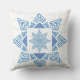 Las imágenes geométricas de copos de nieve azul cubren esta almohada de nieve de la temporada invernal. Perfecto para todas las vacaciones de invierno, Navidades y Hanukah.