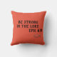 Rojo, Poliéster, almohada de lanzamiento cuadrado con cita de las Escrituras y peces ilustrados. La cita es del Libro Bíblico de los efesios. El pez es el símbolo secreto que los primeros cristianos usaban para identificarse y reunirse sin persecución.