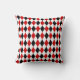 Elegante Cojín decorativo de diamantes rojos y blancos.