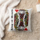 Cojín decorativo de diseño de Rey de Corazones con texto de personalizable y color de fondo en ambos lados.