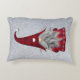 Un bonito gnomo grisáceo de invierno vestido con un traje de manto con copos de nieve y un corazón con su acento de gorra tirando almohada.