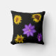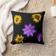 Cojín decorativo de flores moradas y amarillas