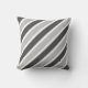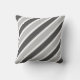 Esta almohada cuadrada monocromática presenta un hermoso patrón diagonal rayado en tonos grises y blancos.