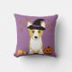 El perro caprichoso y de la diversión del Pembroke Galés del Corgi se vistió para arriba como bruja para el Cojín decorativo decorativo de Halloween