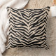 Esta almohada de tiro se muestra en un diseño exótico de estampado de cebra animal en colores de negro y beige claro.