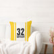 Sencillo y clásico Cojín decorativo Gold & White Striped Monogramado y Numerado Sports Jersey. Ideal para los jugadores de baloncesto, los jugadores de béisbol, los jugadores de hockey, los jugadores de fútbol o cualquier otro atleta. Personalizar con tu número y nombre o el nombre y número de tu jugador deportivo favorito.