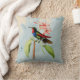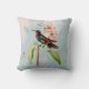 Ilustracion cuadrado del vintage de las características del diseño de la almohada de tiro de un colibrí De oro-atado del zafiro (oenone de Chrysuronia Josefina, de Chrysuronia.) El colibrí brillantemente coloreado del verde, azul y rojo se encarama en una orquídea rosada (Vanille du mexique), con un fondo azul claro de la acuarela.